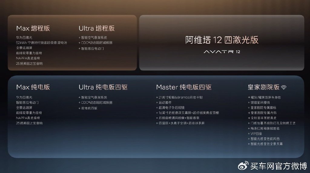 首頁 > 汽車資訊 > 汽車資訊 > 全系標配華為四激光雷達,阿維塔12四激光版開啟預售